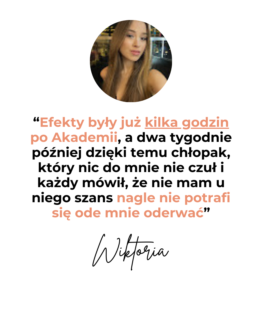 Pokażę Ci, jak całkowicie zmienić energię, z jaką na niego oddziałujesz, odblokowując Twój magnetyzm, żebyś naprawdę zaczęła go przyciągać i już nigdy nie zastanawiała się, czy on wróci, bo sam zacznie Cię pragnąć.
