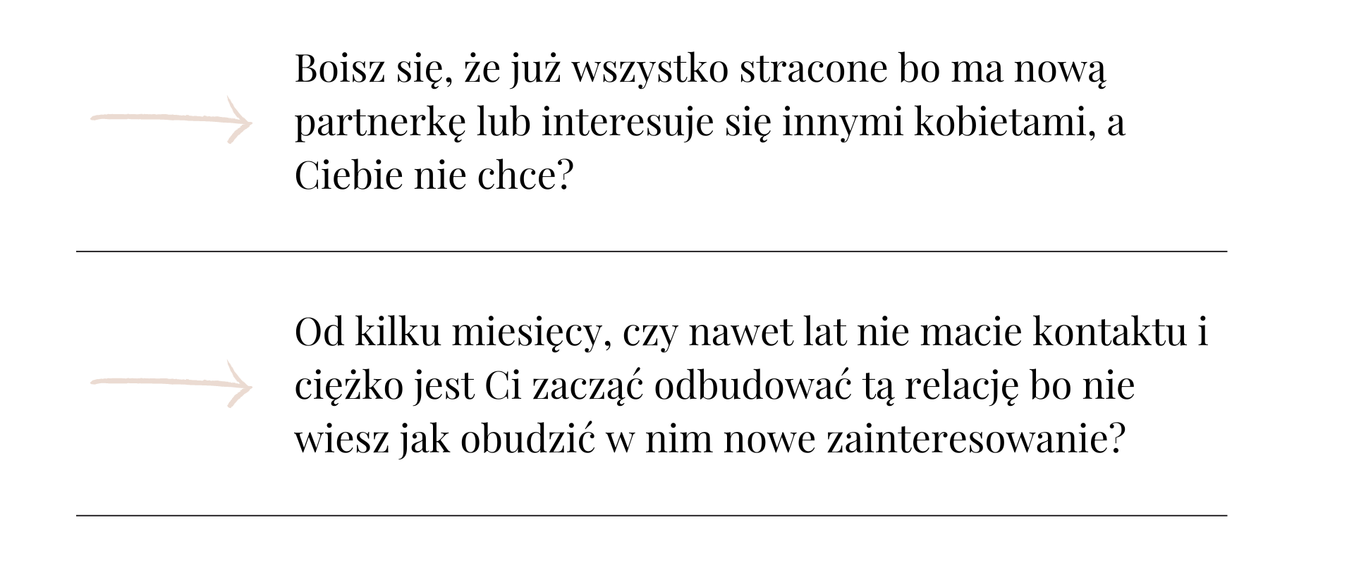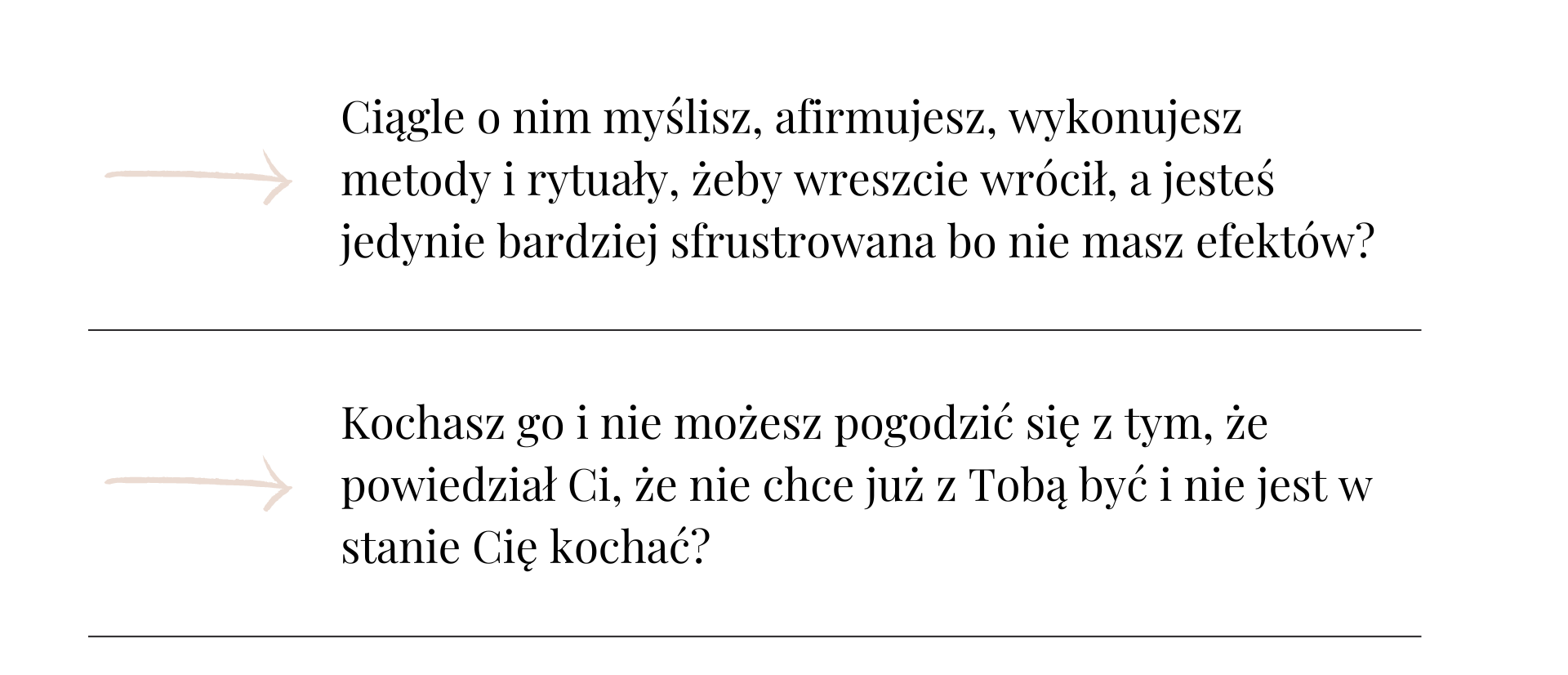 Myśli, które Cię blokują, jak: „powiedział, że to koniec”, „za długo nie mieliśmy kontaktu”, „on już ma inną”...