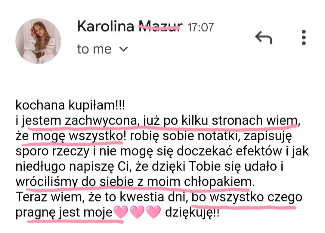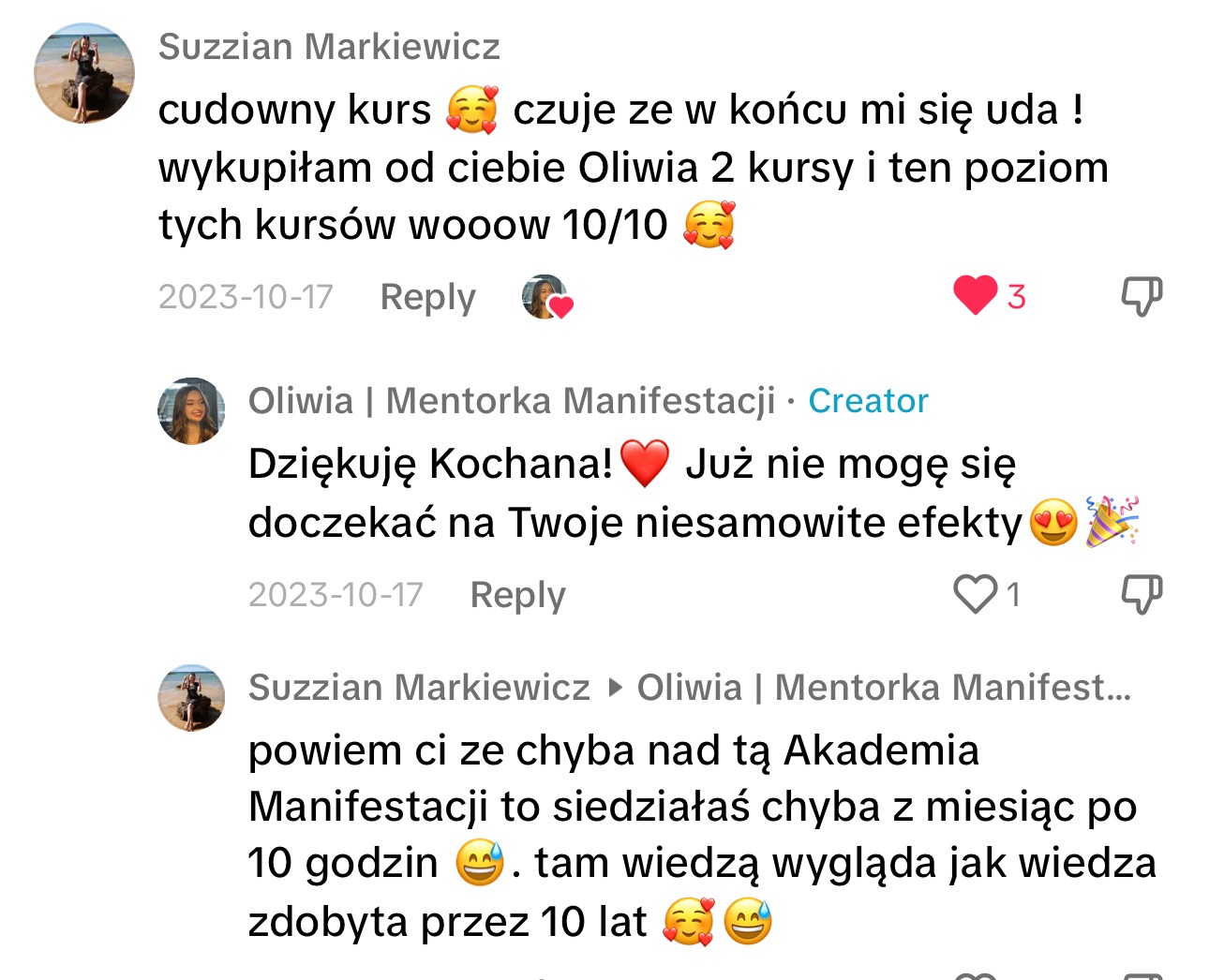 Już zawsze będę wdzięczna Oliwii za to, że nauczyła mnie jak pokochać siebie a co za tym idzie dzięki temu przyciągam mnóstwo wspaniałych rzeczy!!"