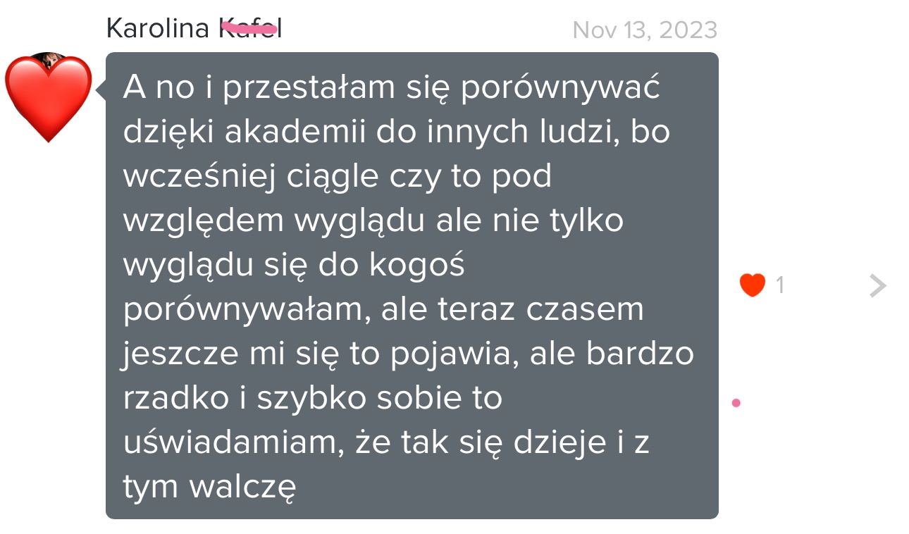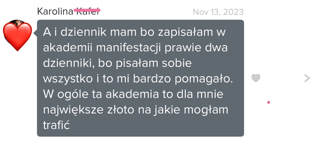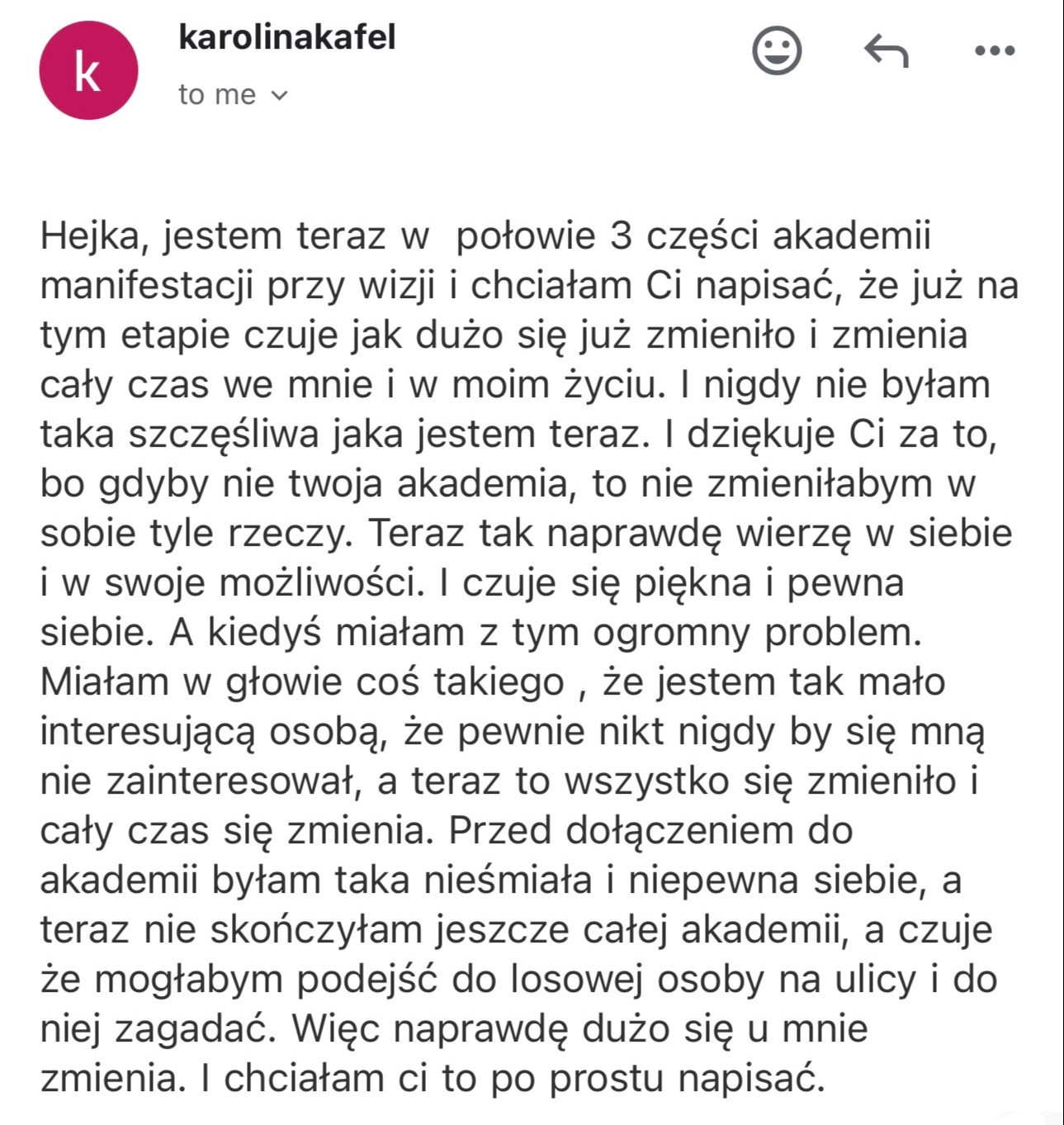Dołączenie do Akademii było najlepszą decyzją jaka mogłam podjąć! Nie dość, że możemy spełnić nasze największe pragnienia to uwalniamy się od blokad i ograniczeń, co pozwala nam żyć swobodnie!